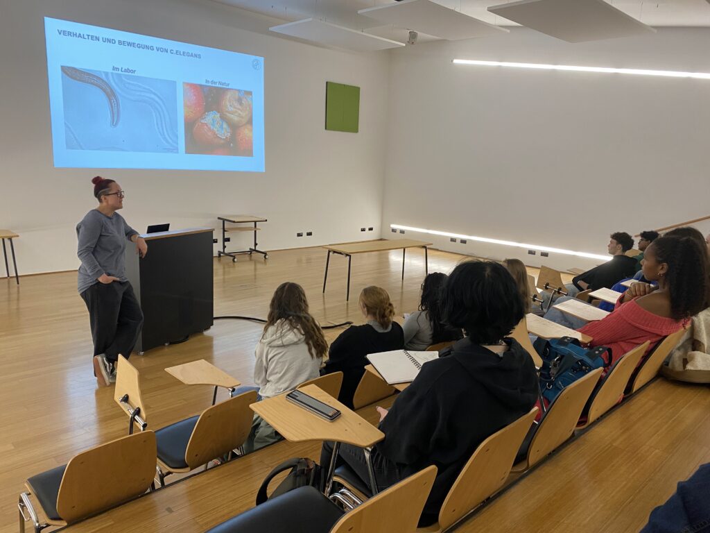 Als Mensch wahrscheinlich erst einmal gar nichts, da wir mit ca. 86 Milliarden Nervenzellen ausgestattet sind, die konstant aktiv sind. Aber wenn man zu den Fadenwürmern Caenorhabditis elegans (C. elegans) gehört, eine ganze Menge!Am Mittwoch, den 5. November 2025, besuchte der Biologie-Leistungskurs von Frau Wagener das Max-Planck-Institut für Neurobiologie des Verhaltens in Bonn.