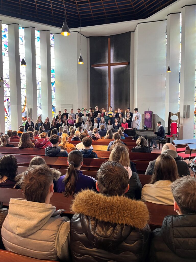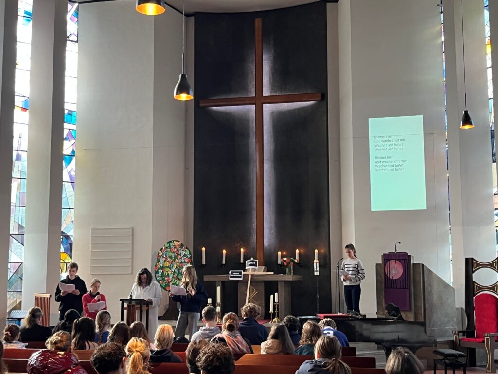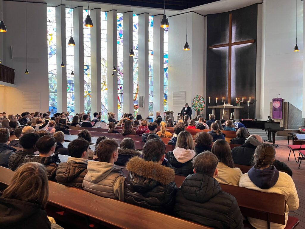 Vorbereitet wurde der Gottesdienst von dem evangelischen Religionskurs in der Jahrgangsstufe 10, den Frau Wloka unterrichtet und dem ein besonderer Dank der Schulgemeinde gilt.
