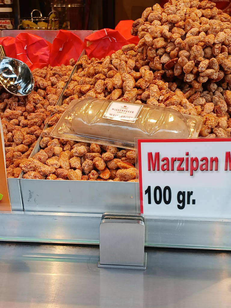 Obwohl oft angenommen wird, das Wort Marzipan komme vom Lateinischen Marci panis (=„Brot des Markus“), geht es vermutlich auf das arabische Wort mautabān („sitzender König“) zurück.