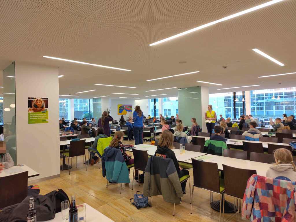 Am Vormittag wurden die Aufgaben bearbeitet, nachmittags gab es für die Schüler:innen ein vielfältiges Angebot an Workshops, während die Aufgaben bereits (anonymisiert) korrigiert wurden. Auch bei der Korrektur und Koordination war das FEG mit Frau Baier, Frau Blomer und Frau Ernst-Brandt wie üblich gut vertreten!