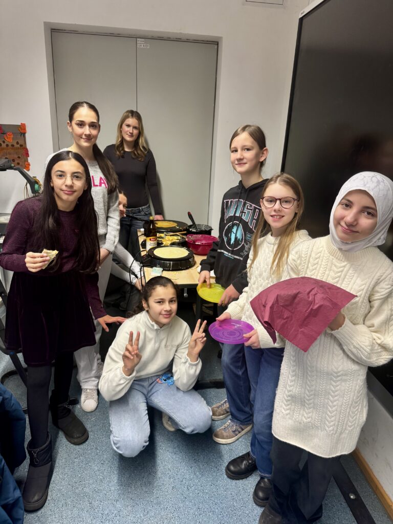 - Traditionelles Galette des Rois und Crêpes Essen in einigen Klassen