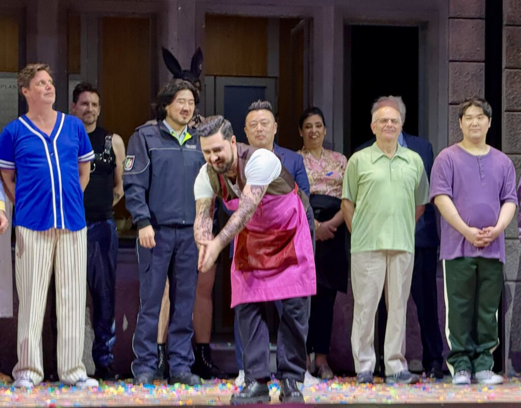 Die Oper verfügte über viele Höhepunkte, sei es der italienische Gesang, den wir trotz der Geschwindigkeit mithilfe der Übertitel verstanden haben, oder das Bühnenbild, das an eine Bonner Südstadtfassade erinnerte. Am besten fand ich aber die Videografie am Anfang und die sehr schnellen und hohen Arien der Sänger und Sängerinnen. Die Oper mit ihrer Romantik und Komödie hat den meisten trotz der Länge von drei Stunden gut gefallen. Am Ende wurde lange applaudiert und wir machten uns auf den Heimweg. Wir freuen uns auf die Nachbesprechungen im Unterricht.