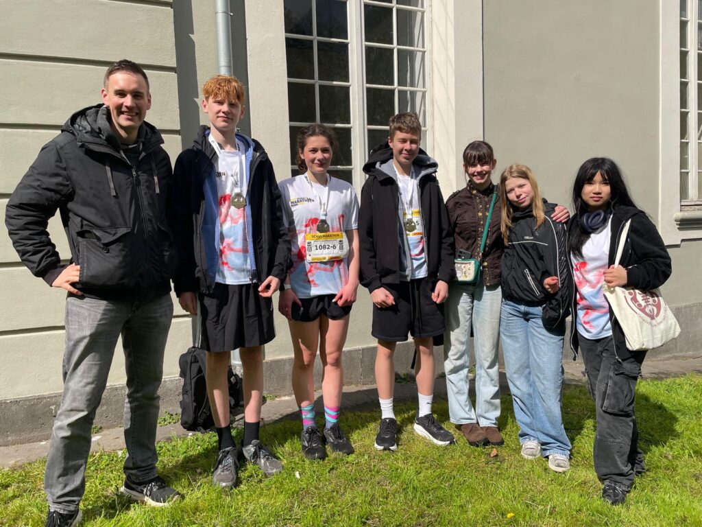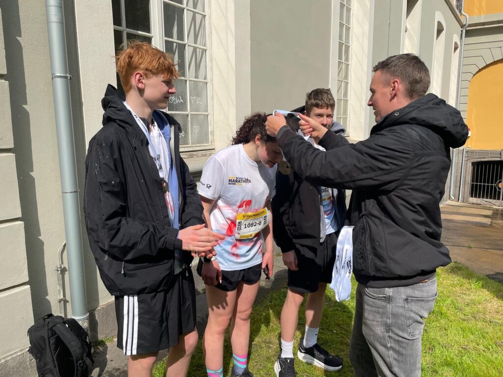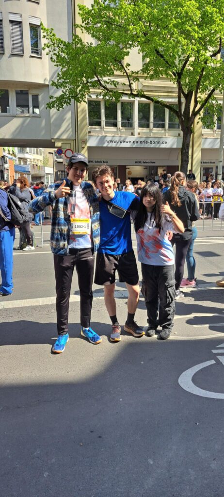 Am Sonntag, 19. April 2026, ging eine Staffel unserer Schule beim diesjährigen Bonner Stadtmarathon an den Start. Die Schülerinnen und Schüler teilten sich die 42,195 Kilometer durch die Stadt und absolvierten den Lauf gemeinsam als Team.